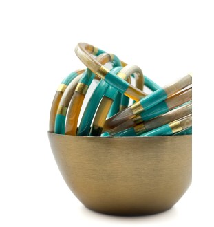 Bracelet jonc en corne véritable fabriqué à la main au Vietnam. Chaque jonc est différent et unique puisqu'il provient d'un morceau de corne de buffle propre à l'animal en question. Diamètre intérieur entre 6 et 7 cm IMPORTANT : Les animaux ne sont pas tués pour leurs cornes, au Vietnam, l'alimentation est composée en grande partie de cette viande de buffle, et les cornes sont recyclées dans des manufactures artisanales.
