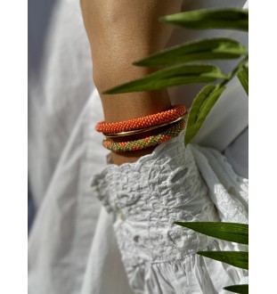 The bracelet rolls over the wrist and naturally adapts to its size thanks to the stretch of the strong cotton threads.